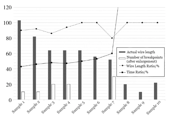 However, for shorter actual wire lengths (<20), the proposed routing method incurs higher time overhead than A*. For samples 8 to 10, the time overhead ratio exceeds 200%.