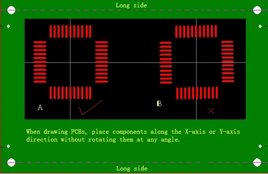 If PCB space constraints necessitate placement, components may be placed along the longer edge’s process edge.