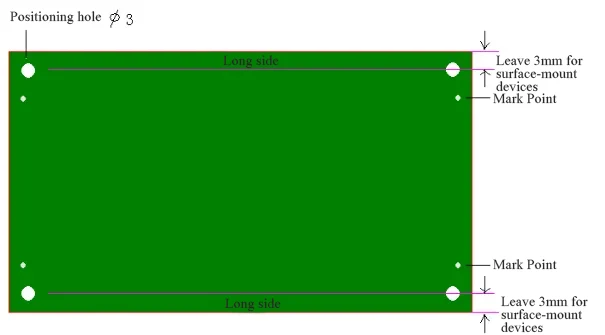 When designing PCBs, leave a border of at least 3mm along the longer side for conveying the board during SMT placement.