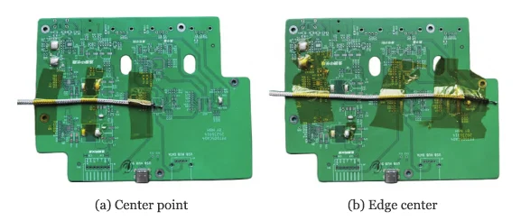 Engineers select measurement points at the center and the edge center of the bare PCB.