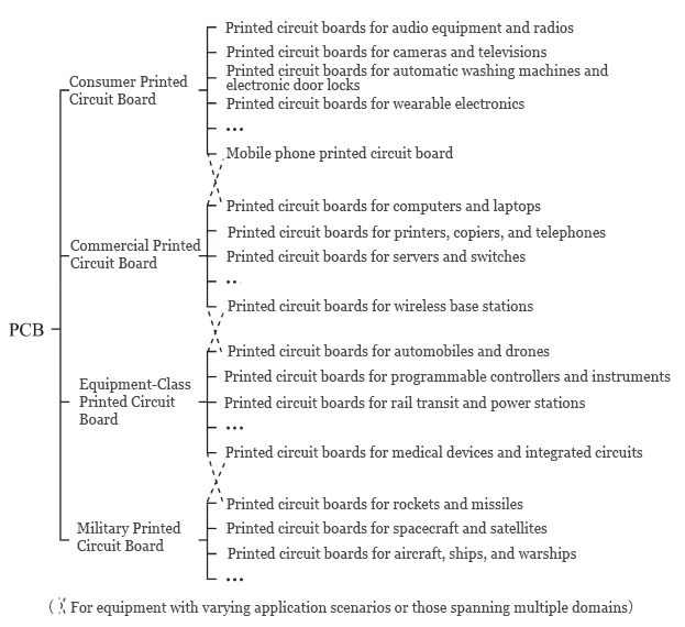The classification of PCBs by application, from broad categories down to specific devices, is illustrated in Figure 1.